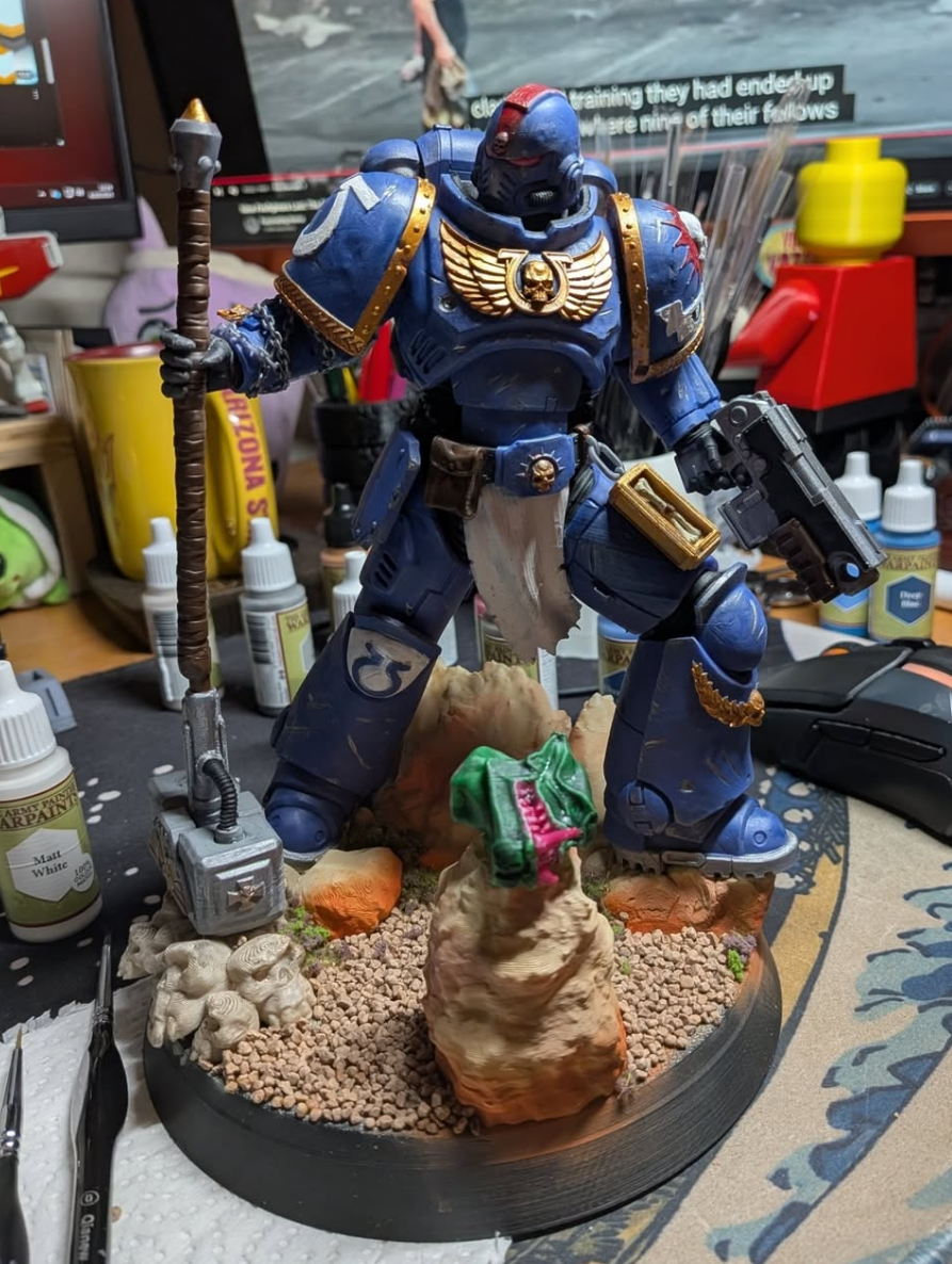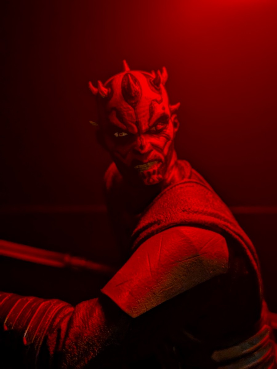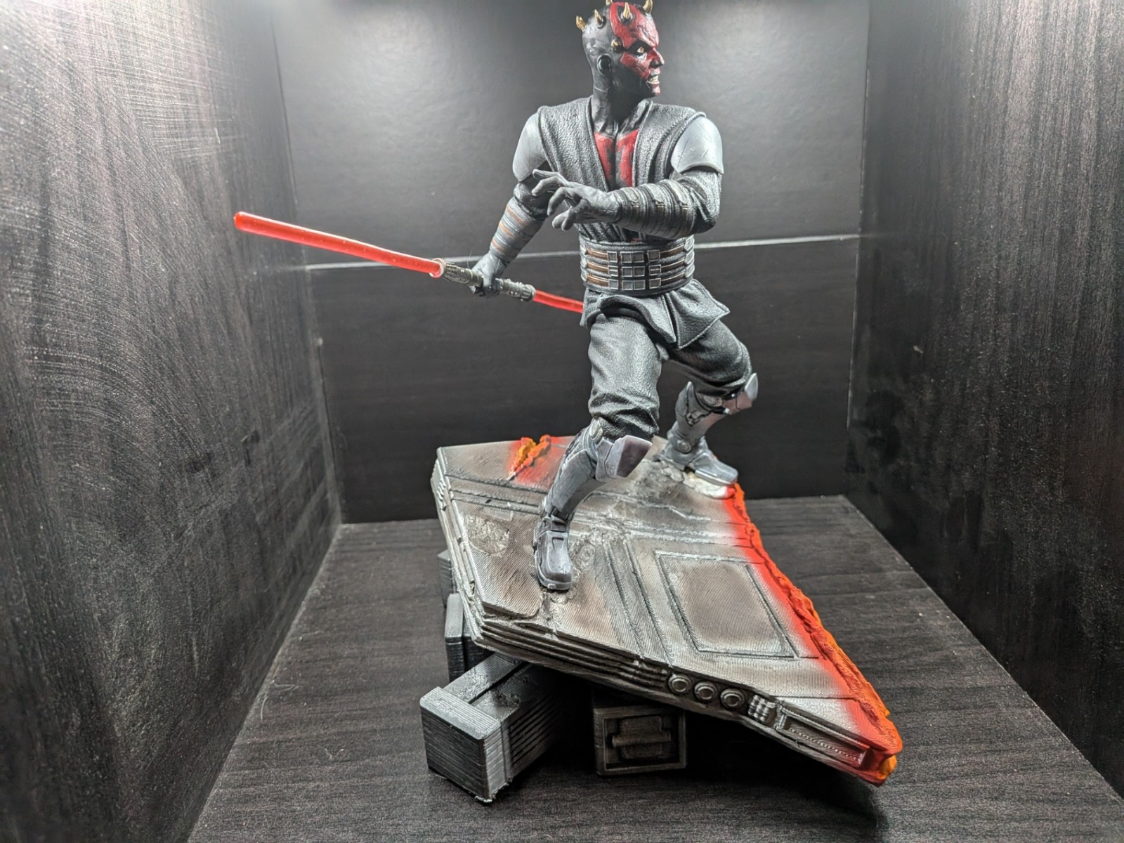 Printed with Resin and a FDM printed base, this Darth Maul figure was completed on 7/29/2025. The red lightsaber was printed with translucent Red Resin. Maul was painted by hand, while the base was painted by an airbrush.